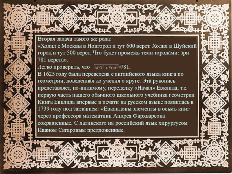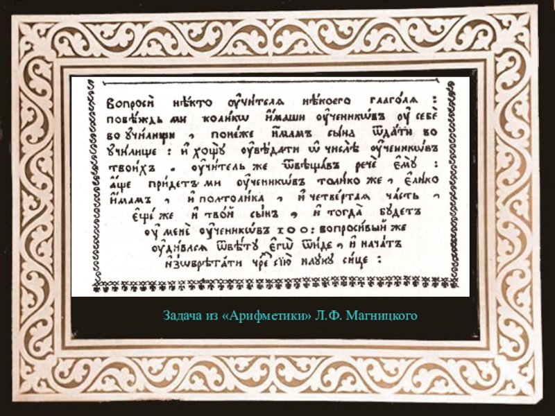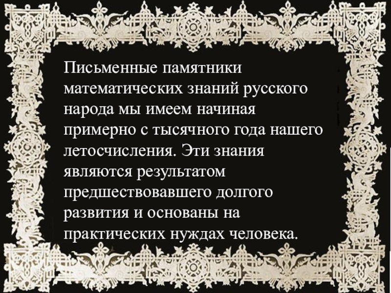 Письменные памятники математических знаний русского народа мы имеем начиная примерно с