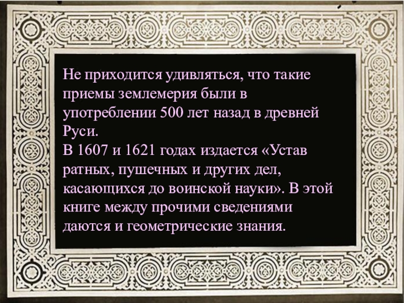 Уже в самых старинных памятниках русской истории мы встречаем начальные сведения по геометрии.