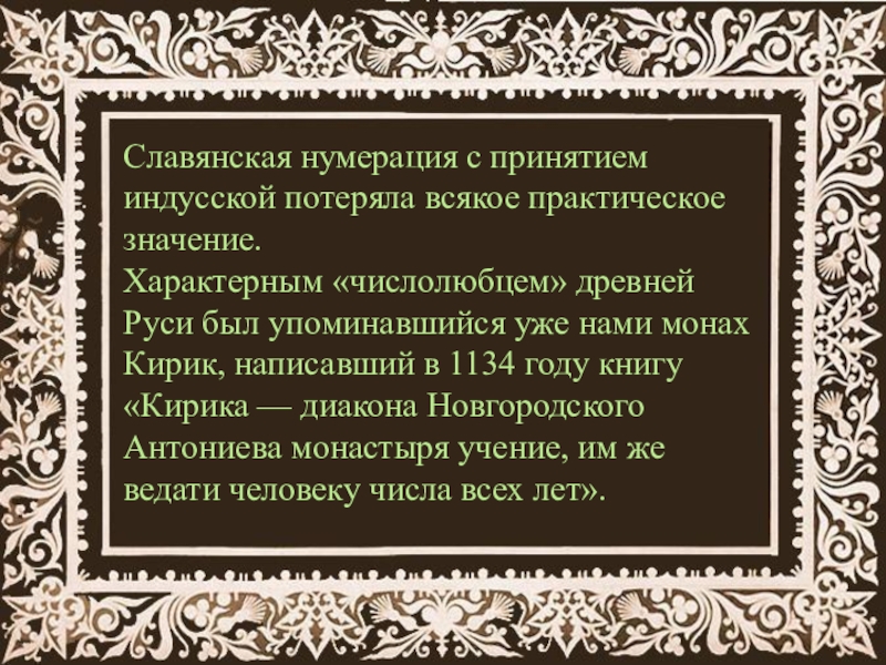 Примером таких «числолюбцев» был новгородский монах начала двенадцатого столетия Кирик.