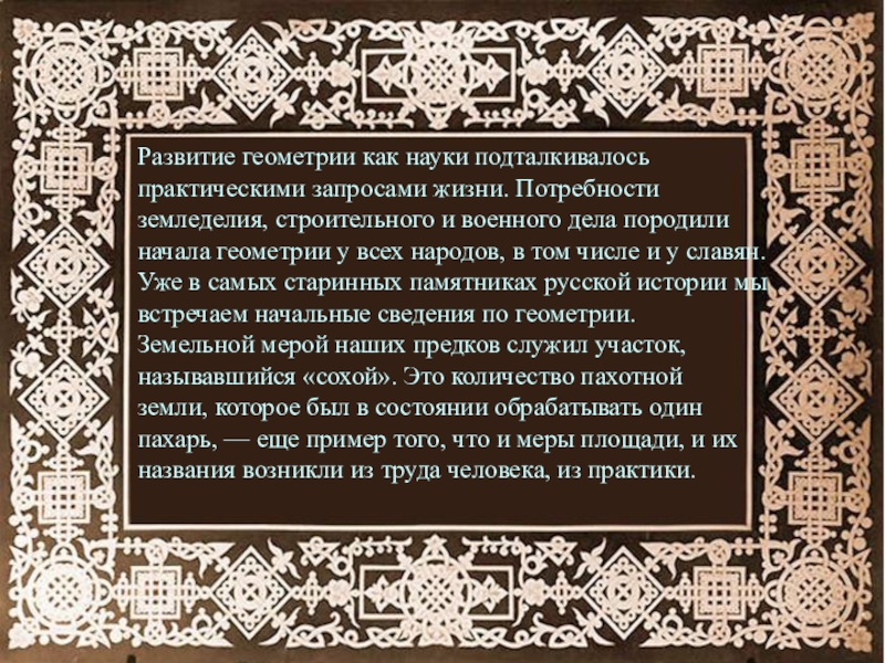 и военного дела породили начала геометрии у всех народов, в том числе и у славян.