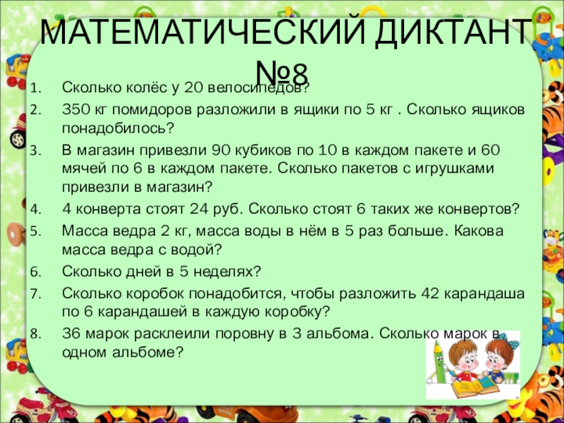 Слайд 16МАТЕМАТИЧЕСКИЙ ДИКТАНТ №8