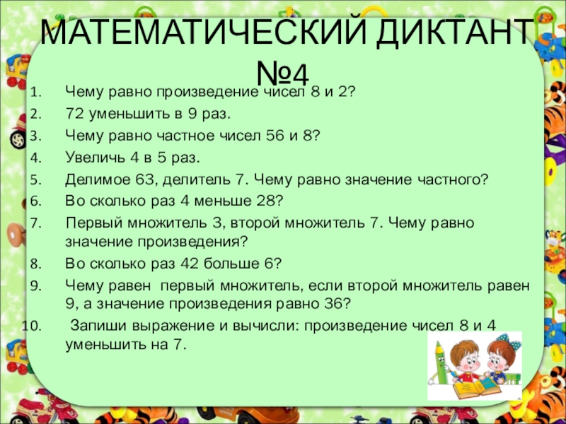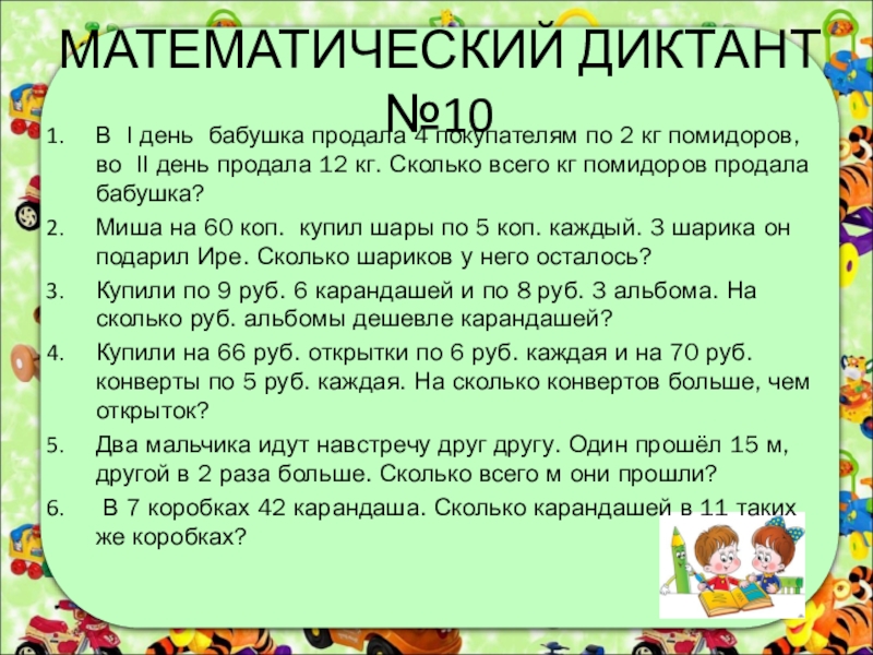 Слайд 20МАТЕМАТИЧЕСКИЙ ДИКТАНТ №10