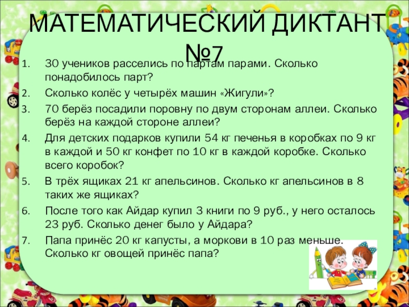 Слайд 14МАТЕМАТИЧЕСКИЙ ДИКТАНТ №7