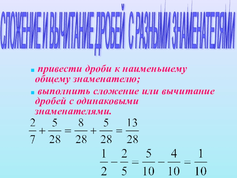 СЛОЖЕНИЕ И ВЫЧИТАНИЕ ДРОБЕЙ С РАЗНЫМИ ЗНАМЕНАТЕЛЯМИ