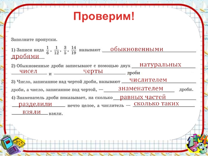 Нужно это число разделить на знаменатель и частное умножить на числитель.