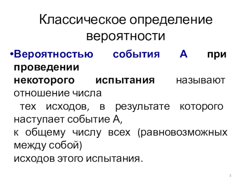 Слайд 3Классическое определение вероятности