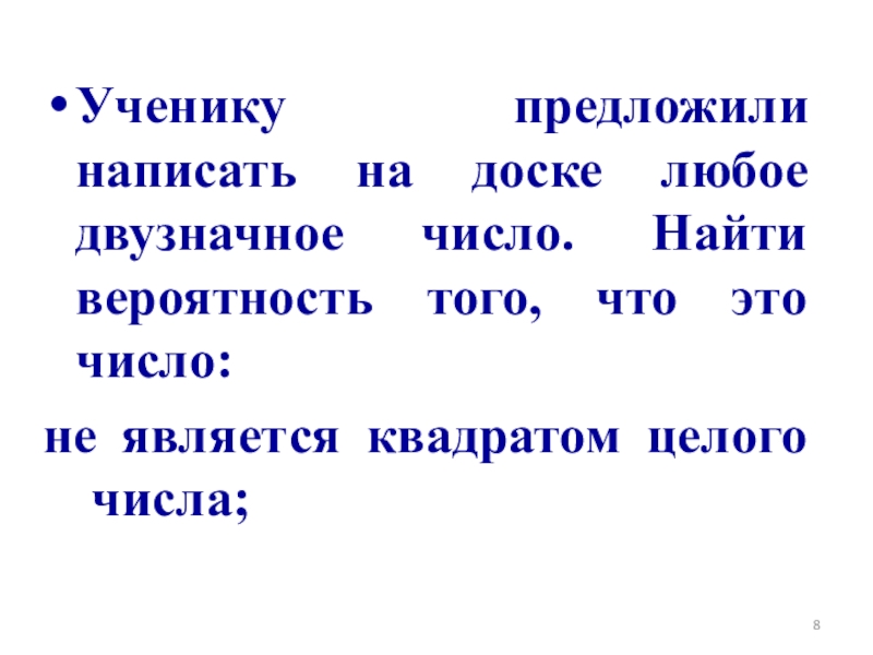 Слайд 8Ученику предложили написать на доске любое двузначное число. Найти вероятность того,