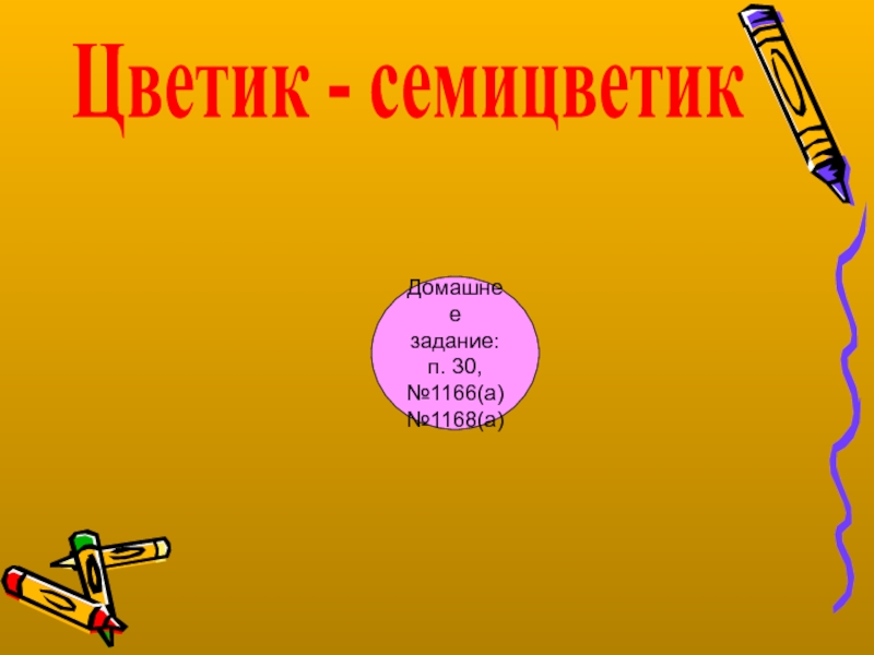 Цветик - семицветикДомашнеезадание:п. 30,№1166(а)№1168(а)