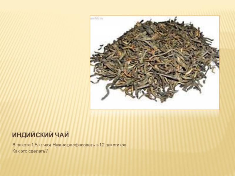 В пакете 1,8 кг чая. Нужно расфасовать в 12 пакетиков.