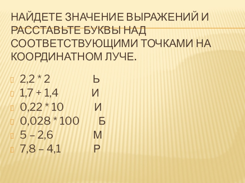 Слайд 12найдете значение выражений и расставьте буквы над соответствующими точками на координатном
