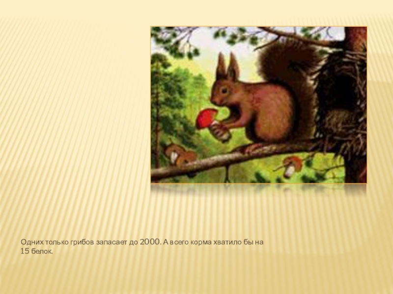 Слайд 8Одних только грибов запасает до 2000. А всего корма хватило бы