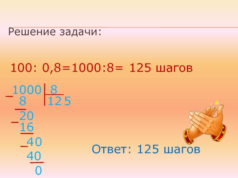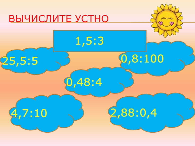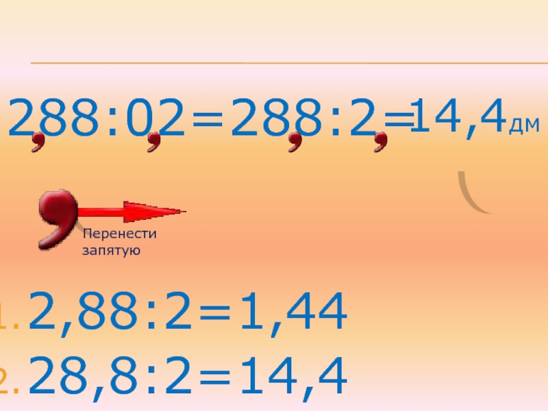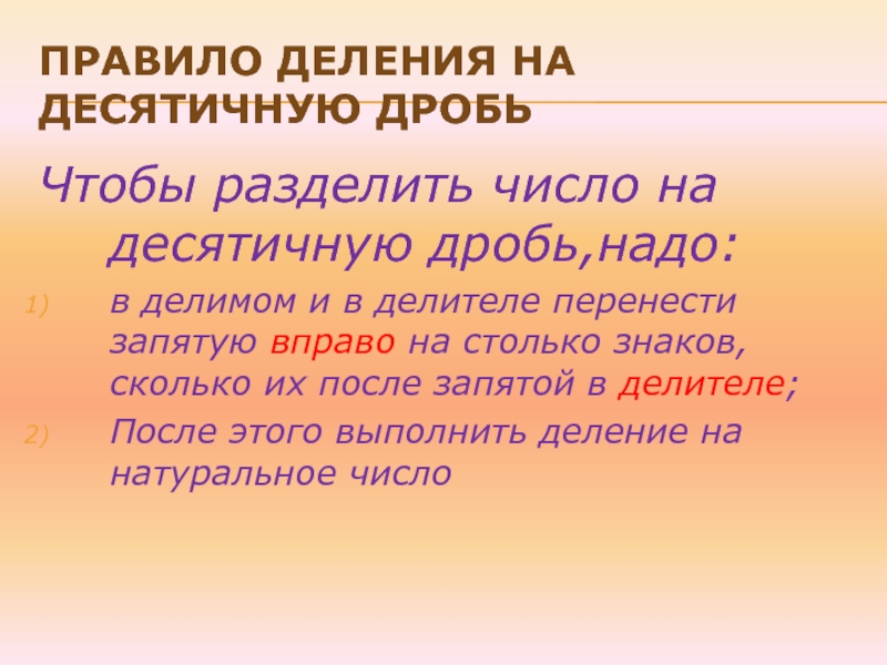 Разделить на 0,1; на 0,01;на 0,001 и т. д., то же самое , что умножить на 10;на 100;на 1000 и т. д .