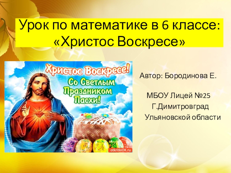 Слайд 2Урок по математике в 6 классе: «Христос Воскресе»