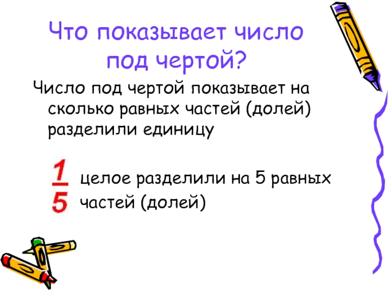 Число под чертой показывает на сколько равных долей разделили единицу.