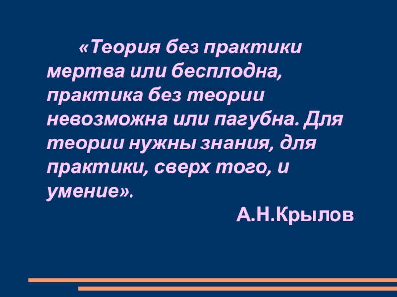 без теории невозможна или пагубна. Для теории нужны знания, для практики, сверх того, и умение».