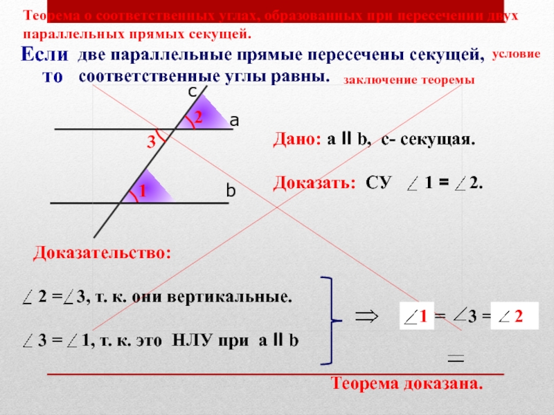 Следствие 1. Если прямая пересекает одну из двух параллельных прямых, то она пересекает и другую.