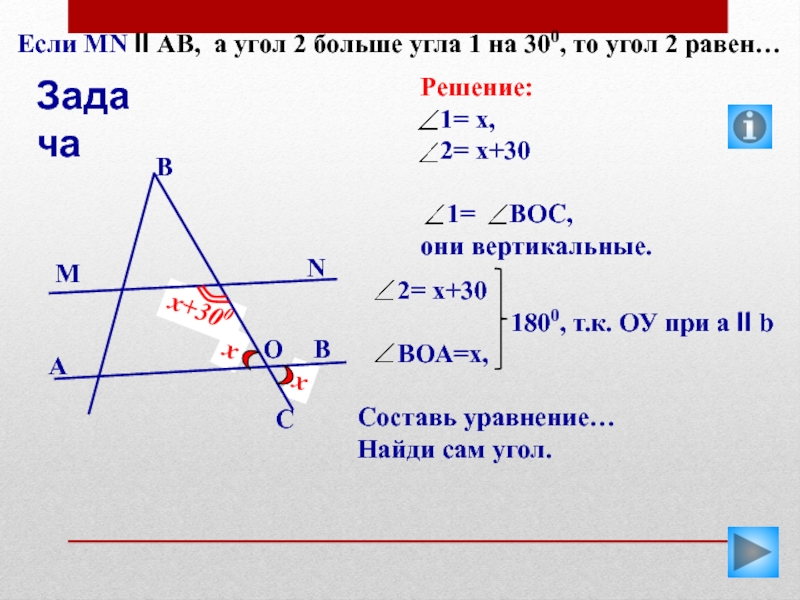 Если MN II AB, а угол 2 больше угла 1 на 300, то угол 2 равен…