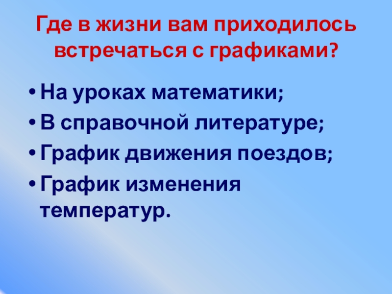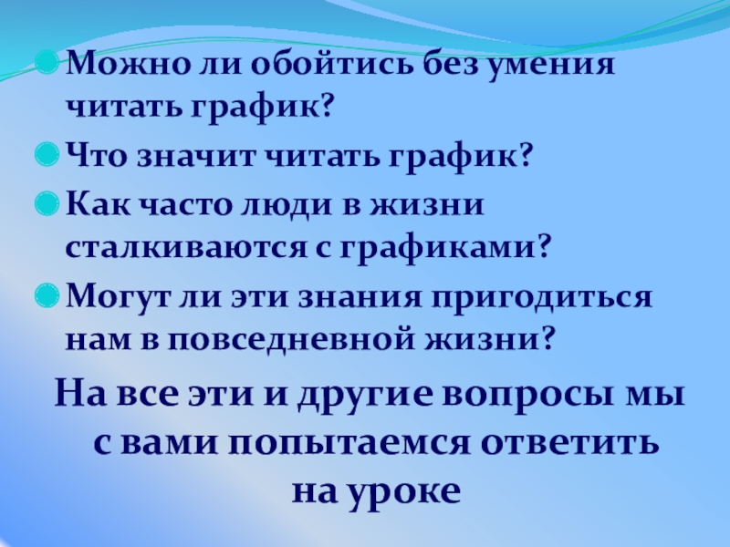 Графики непосредственно связаны не только с другими дисциплинами(физика, химия, астрономия и др.), но и широко применяется в бытовой и производственной сферах, науке.