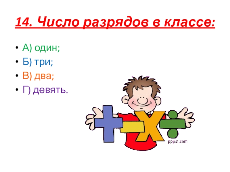 14. Число разрядов в классе:А) один;Б) три;В) два;Г) девять.