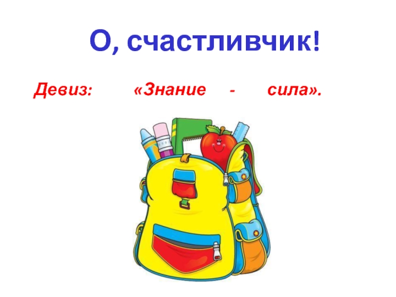 Девиз: 		«Знание   -    сила».О, счастливчик!