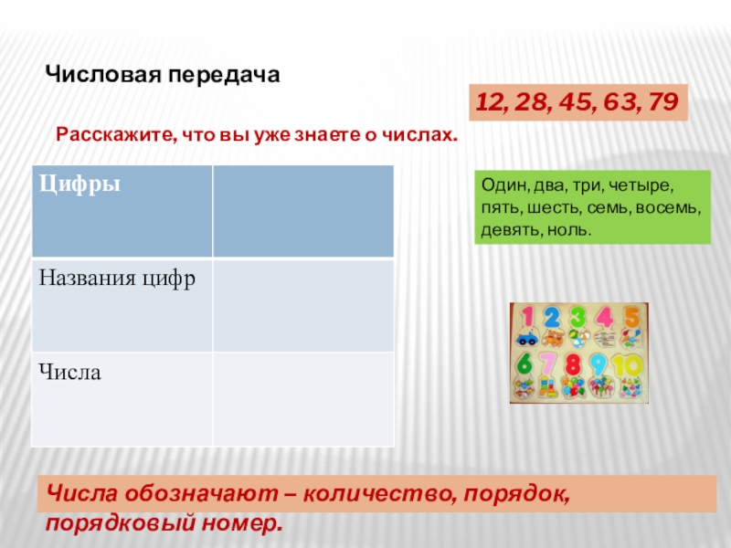 Числа обозначают – количество, порядок, порядковый номер.