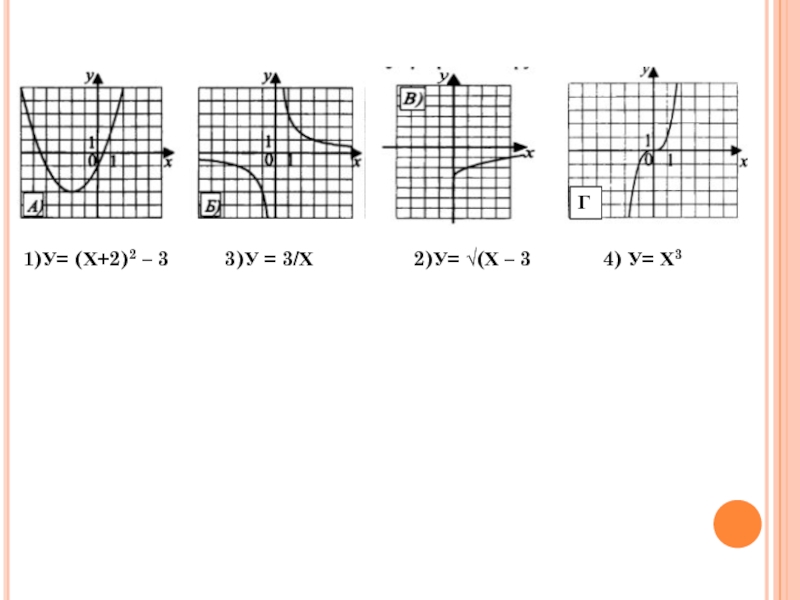 Г1)У= (Х+2)2 – 3   2)У= √(Х – 3    3)У = 3/Х