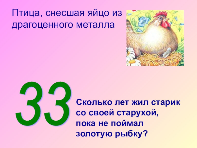 Старикам яйцо снесла,
