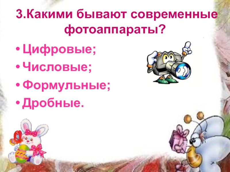 Это сайт презентаций, где можно хранить и обмениваться своими презентациями, докладами, проектами, шаблонами в формате PowerPoint с другими пользователями. Мы помогаем школьникам, студентам, учителям, преподавателям хранить и обмениваться учебными материалами.