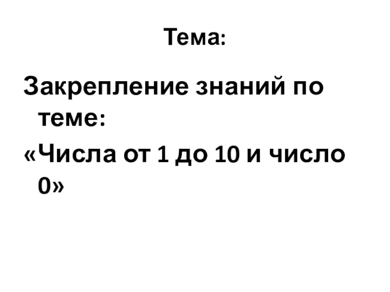 Тема:Закрепление знаний по теме:«Числа от 1 до 10 и число 0»