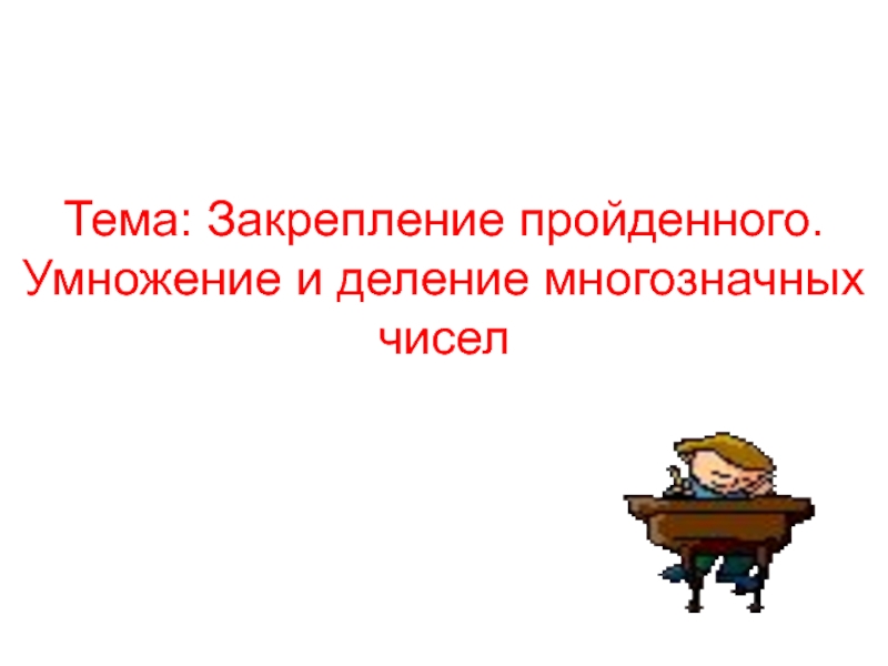 Слайд 1 Тема: Закрепление пройденного. Умножение и деление многозначных чисел