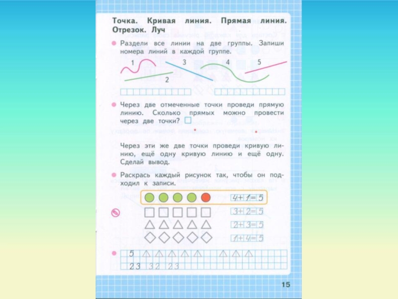 1 класс МатематикаТочка Кривая линия Прямая линия Отрезок
