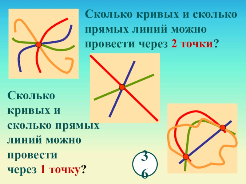 Сколько кривых и сколько прямых линий можно провести через 1 точку?Сколько кривых и сколько прямых линий можно