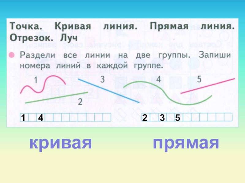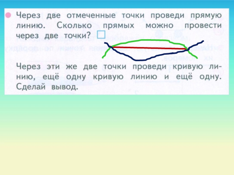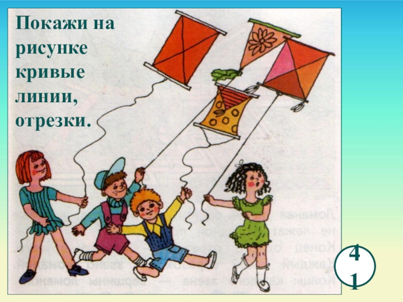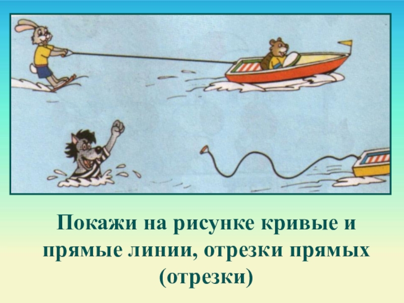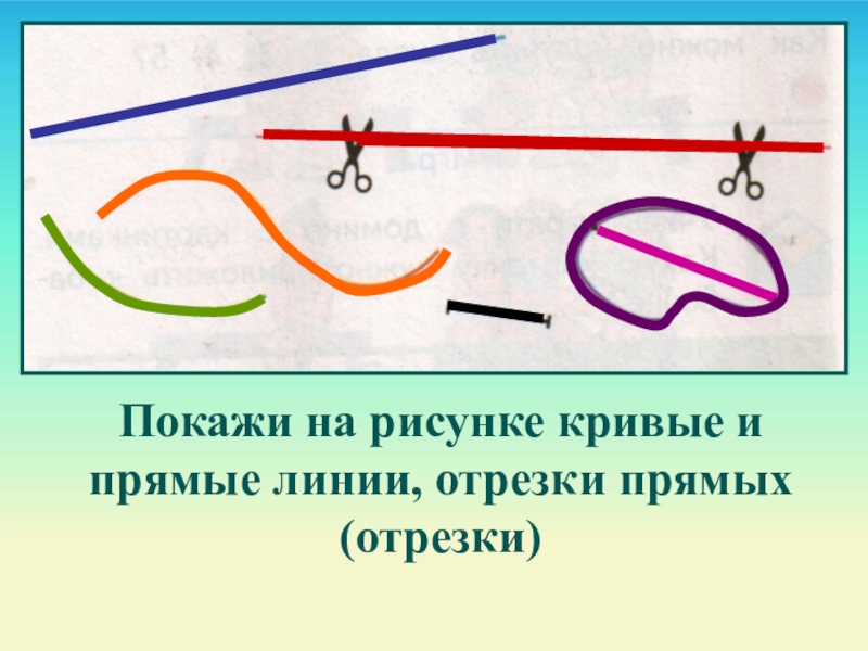 Слайд 22Покажи на рисунке кривые линии, отрезки.