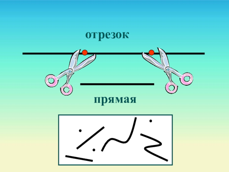 Слайд 19Покажи на рисунке кривые и прямые линии, отрезки прямых (отрезки)