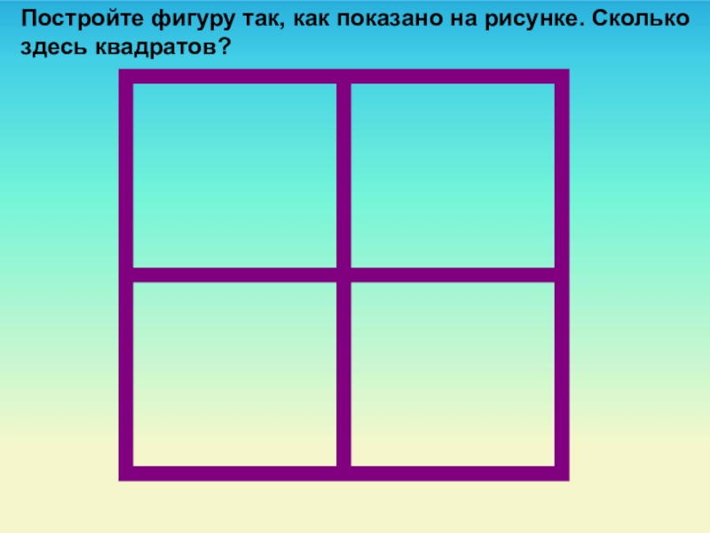 Постройте фигуру так, как показано на рисунке. Сколько здесь квадратов?