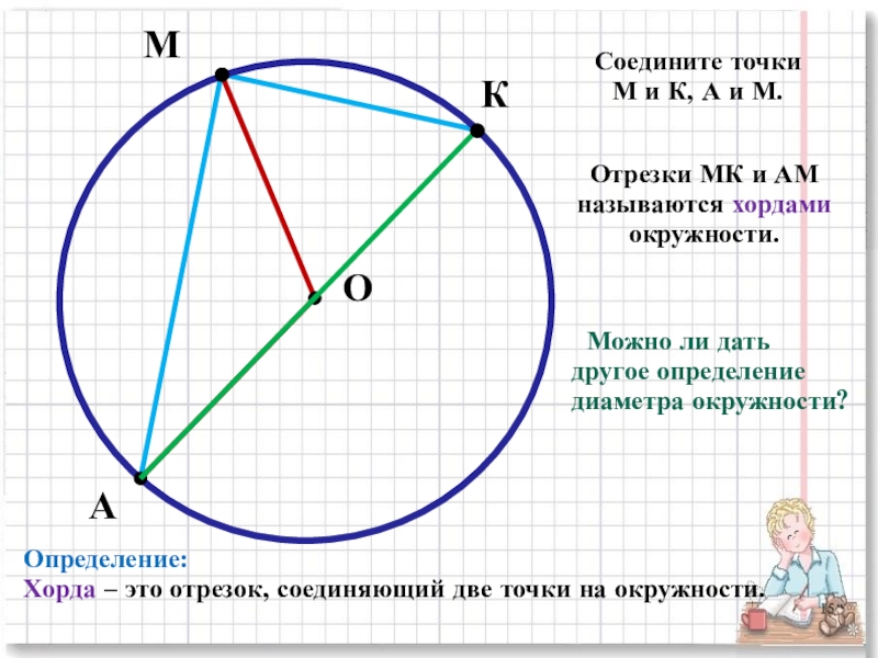 Хорда – это отрезок, соединяющий две точки на окружности.