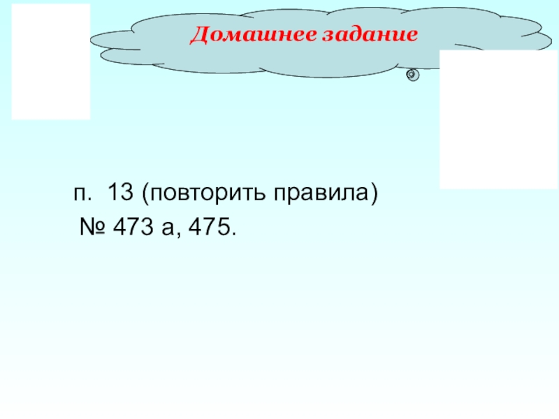 Домашнее задание   п. 13 (повторить правила)   № 473 а, 475.