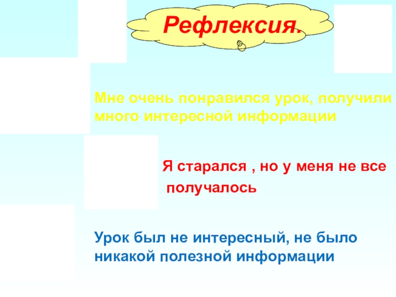 Рефлексия.Мне очень понравился урок, получили много интересной информации