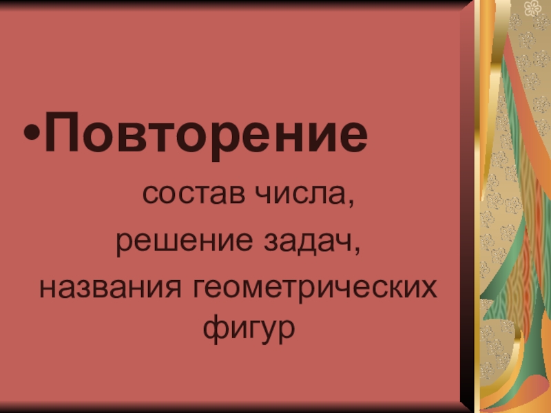 Повторение  состав числа, решение задач, названия геометрических фигур
