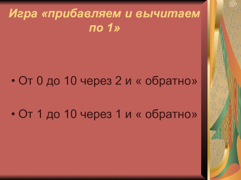 Слайд 6 Игра «прибавляем и вычитаем по 1»