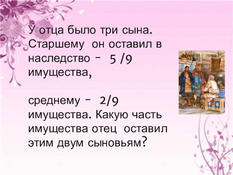 У отца было три сына. Старшему он оставил в наследство –
