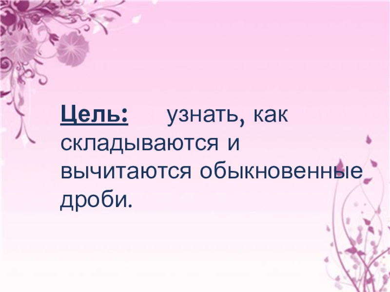Цель: узнать, как складываются и вычитаются обыкновенные дроби.