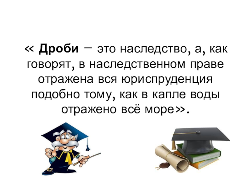 Слайд 2« Дроби – это наследство, а, как говорят, в наследственном праве отражена вся