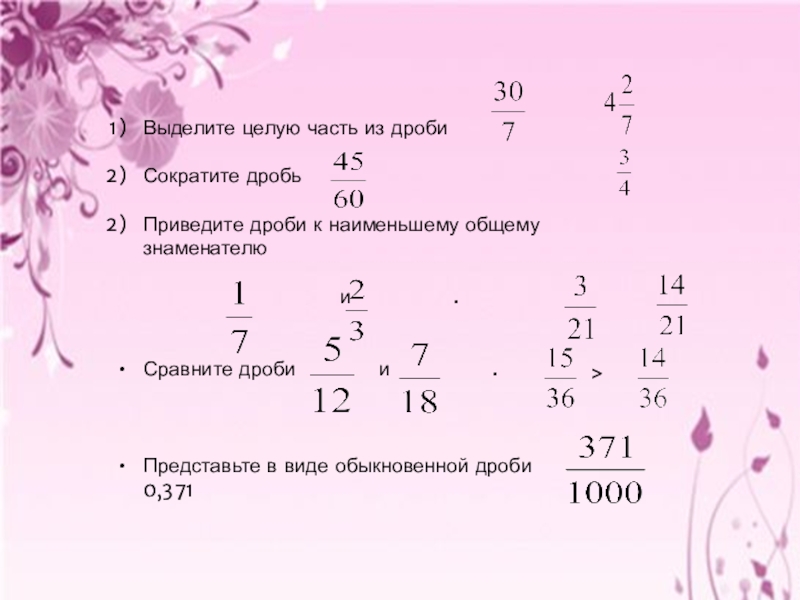 Выделите целую часть из дроби        Сократите дробь