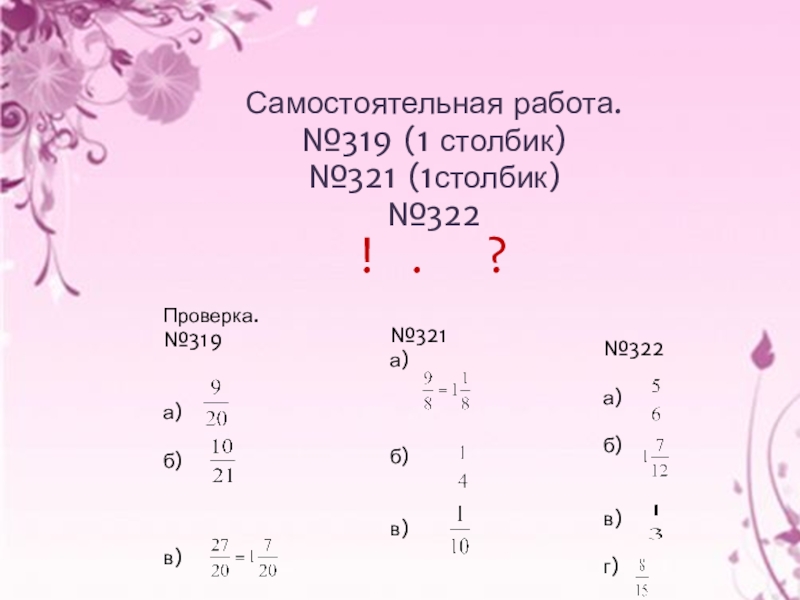 Самостоятельная работа.№319 (1 столбик)№321 (1столбик)№322!  .   ?