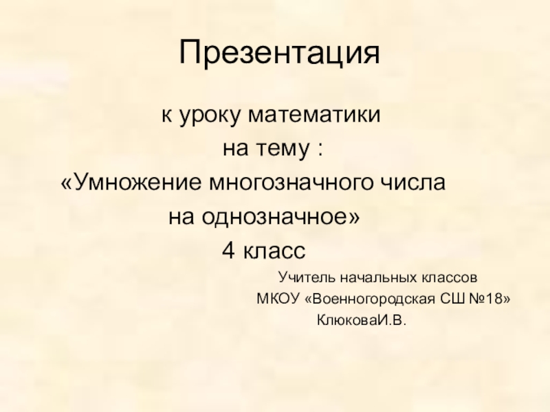 «Умножение многозначного числа
