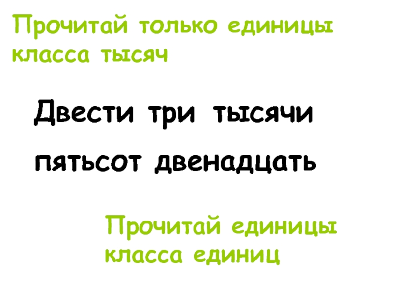 Двести трипятьсот двенадцатьПрочитай только единицы класса тысячПрочитай единицы класса единиц тысячи