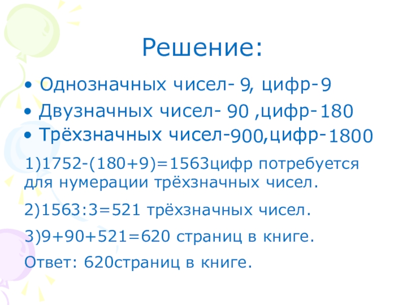 1)1752-(180+9)=1563цифр потребуется для нумерации трёхзначных чисел.