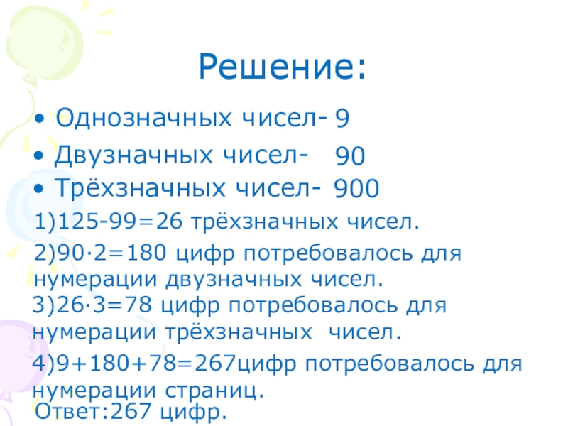 4)9+180+78=267цифр потребовалось для нумерации страниц.