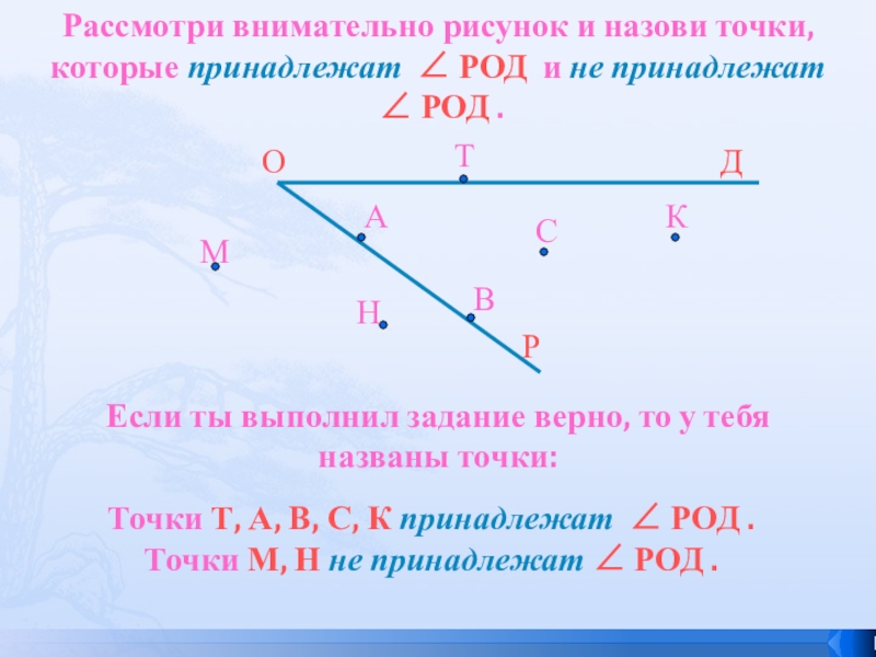 Точки Т, А, В, С, К принадлежат ∠ РОД .